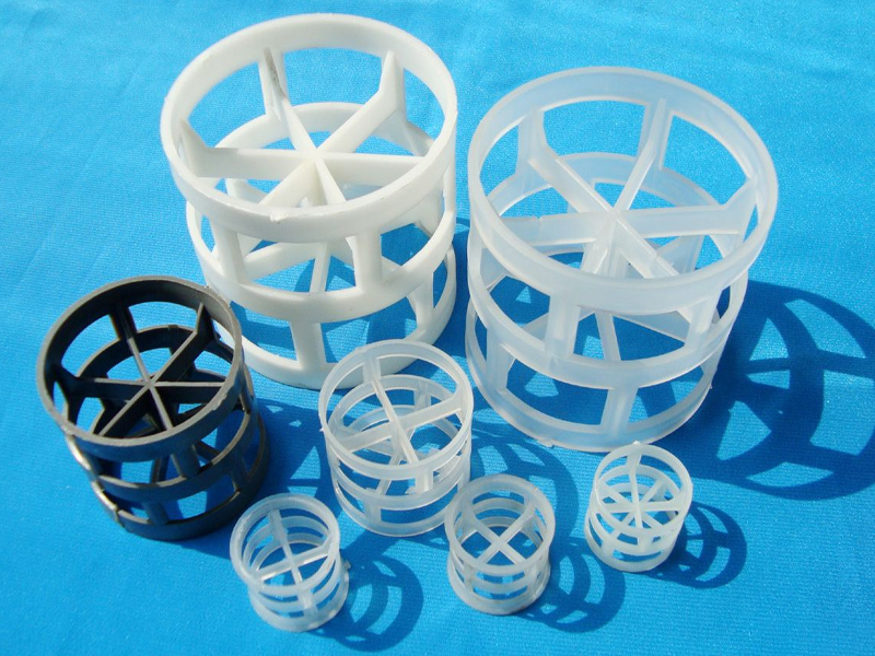 在不增加填料表面積的情況下,大大改善了填料層中氣液兩相的流動,提高了填料的流體力學和傳質性能。由于鮑爾環在環壁上開了很多窗口,填料塔中的氣體和液體可以自由通過窗口,所以填料層中的氣體和液體分布比拉西環有了很大的改善,尤其是填料環的內表面容易被液體潤濕,使內表面得到充分利用。